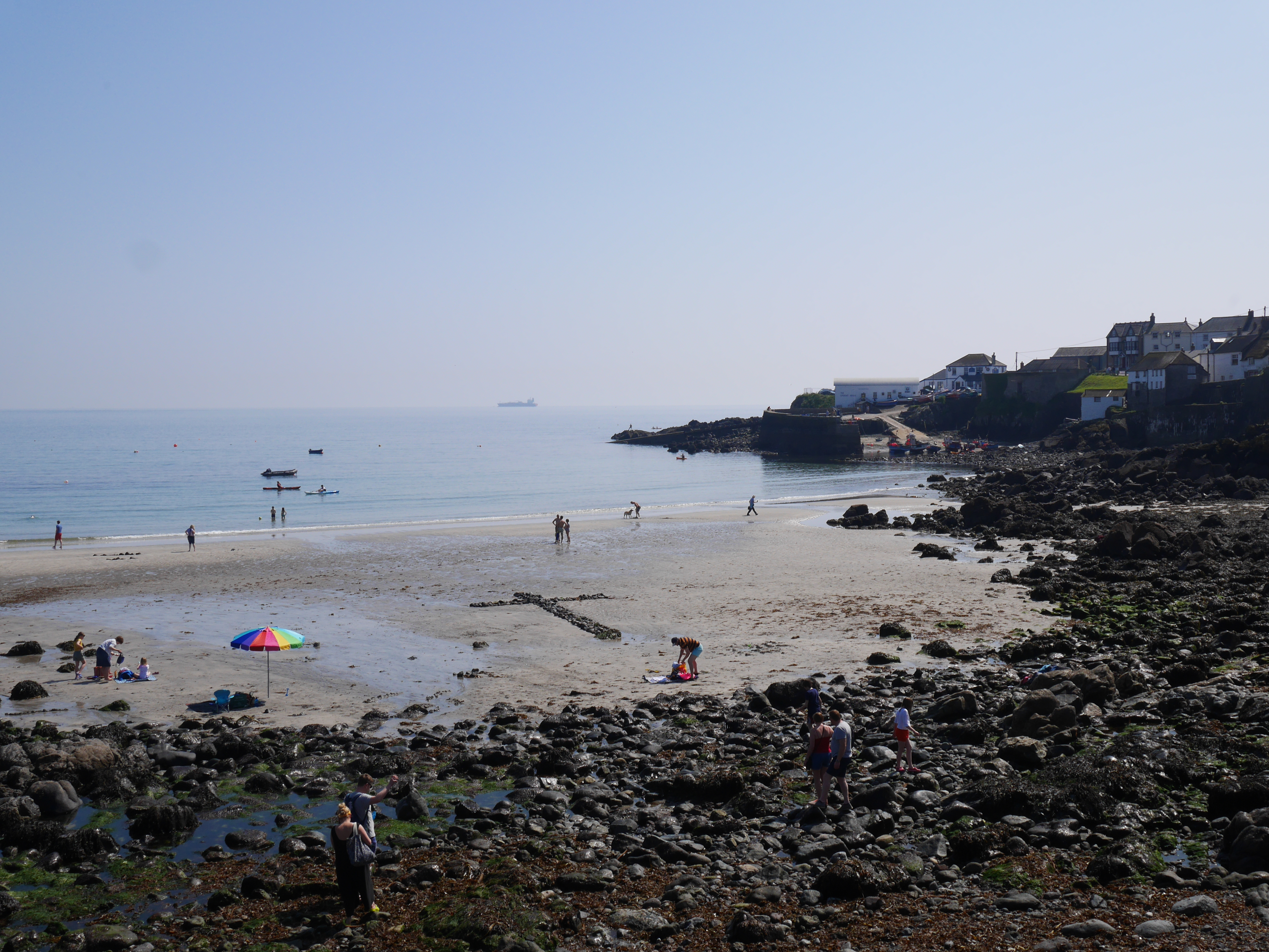 Coverack: An exquisite little fishing and water activities cove, around 12 miles south of Helston on the B3293 is well worth a jaunt – lunch at the Lightboat House did quite nicely thank you, awesome view of the cove. Followed by a cornish ice cream, then a saunter down to the beach got the thumbs up particularly from the two-year old. Beware of the tide sweeping in quickly – the two-year old noticed alright – quickly dragging belongings after yelling at us laid back oldies!